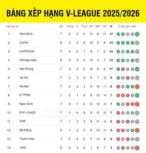Bảng xếp hạng V-League mới nhất: Căng thẳng nhóm đầu, HAGL xếp cuối