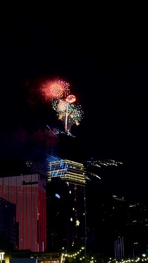 VOV.VN - Màn pháo hoa rực rỡ tại Quảng trường Nguyễn Văn Linh (TP Hưng Yên) - nơi bầu trời đêm bừng sáng trong những sắc màu lung linh, hòa nhịp cùng niềm hân hoan chào đón Xuân Bính Ngọ.