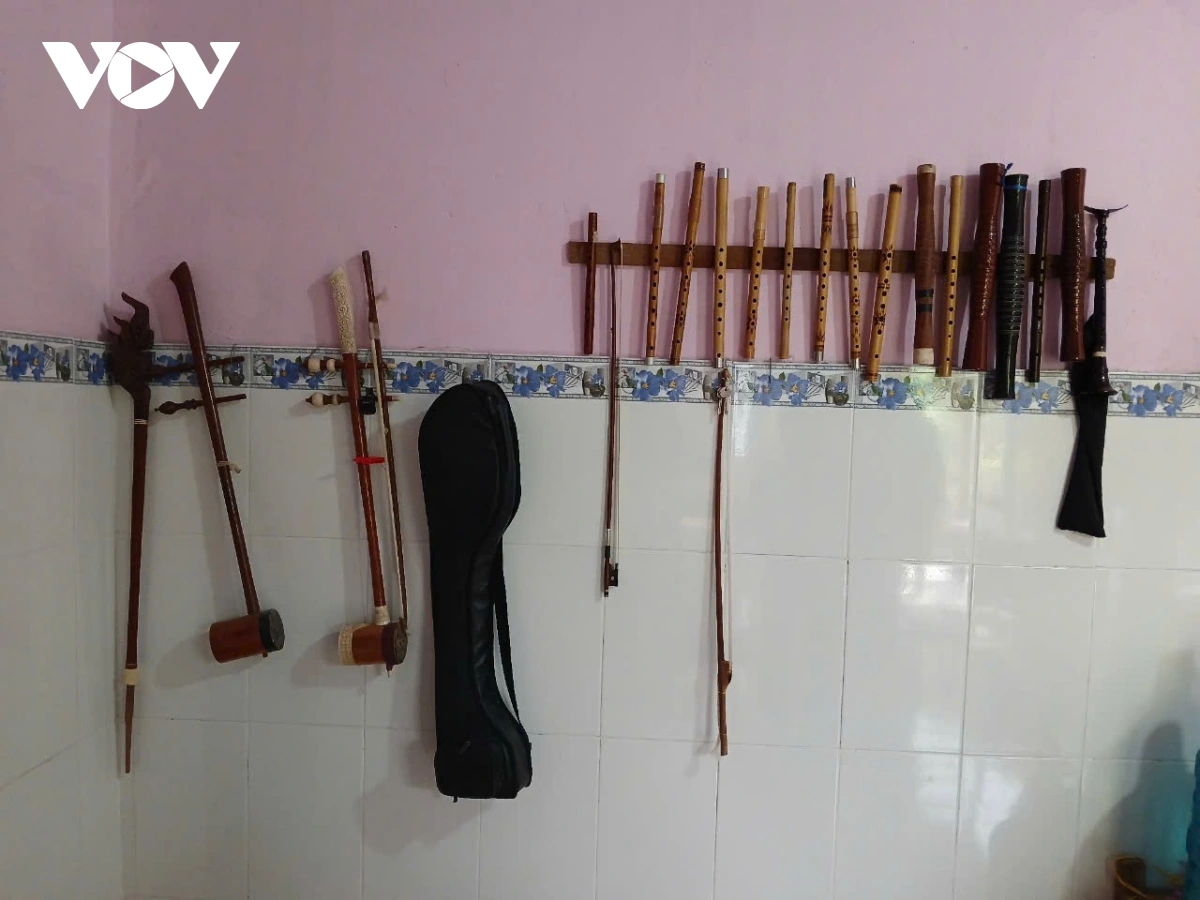 Những nhạc cụ như đàn cò, sáo Khlui, srolay... do anh Thạch Chom Rong chế tác được nhiều người đặt mua