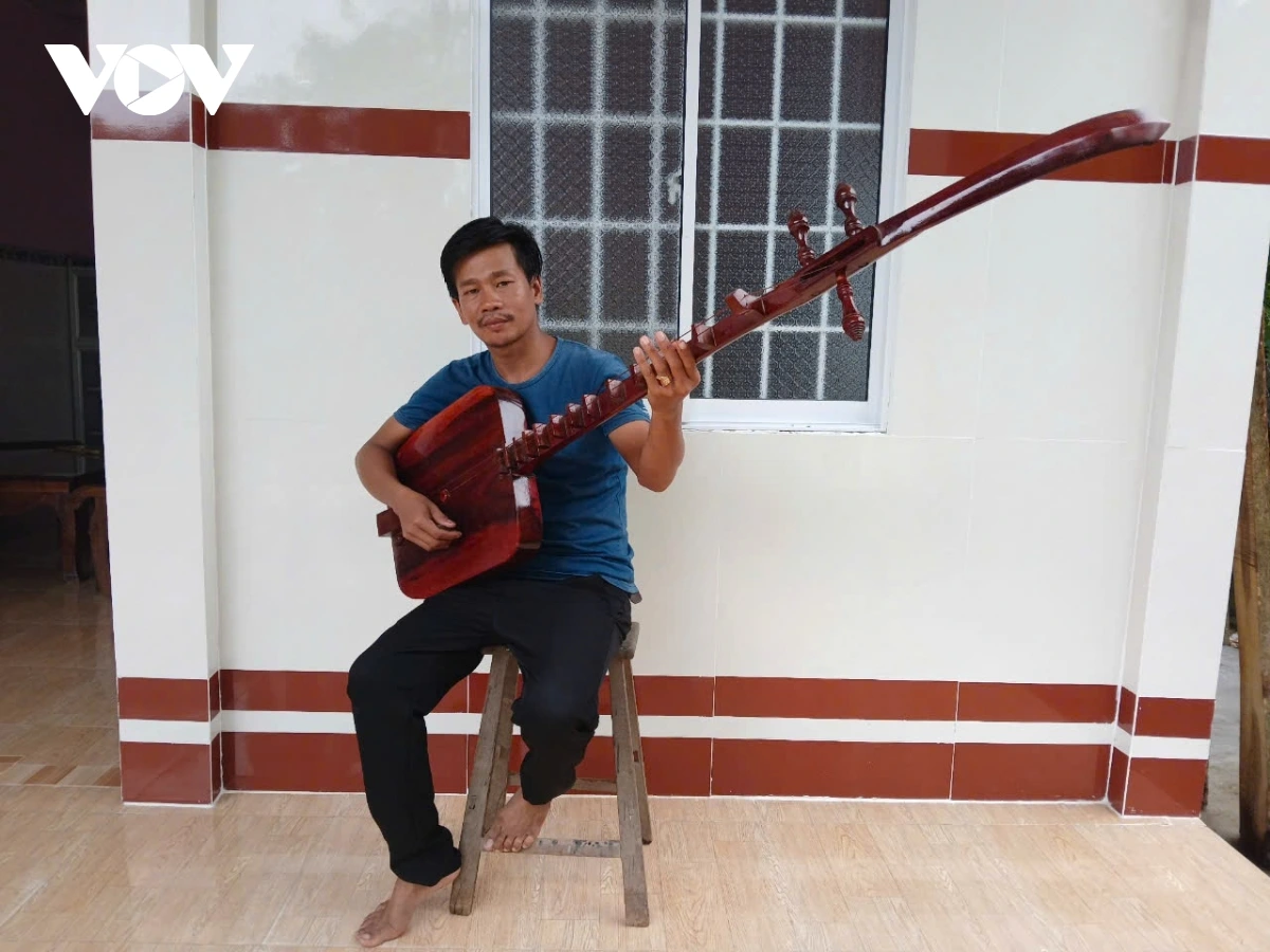 Anh Thạch Chom Rong tâm đắc với cây đàn chà pây đon veng do anh tự chế tác