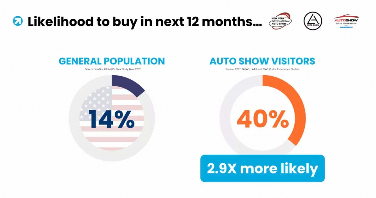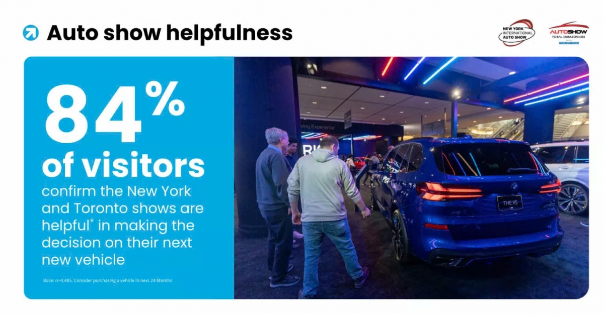 Một nghiên cứu mới do Clarify Group thực hiện, được hỗ trợ bởi các triển lãm ô tô như New York, Los Angeles và Canadian International Auto Shows, xác nhận rằng dù lượng khách đến các triển lãm có giảm sút, các sự kiện này vẫn có vai trò quan trọng đối với người mua xe mới.