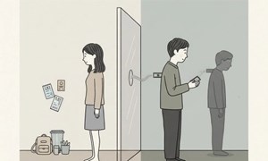 Phòng ngủ có nội thất đơn giản với tấm nệm trải trên sàn gỗ. Ô cửa lớn mở ra một ban công bên ngoài.