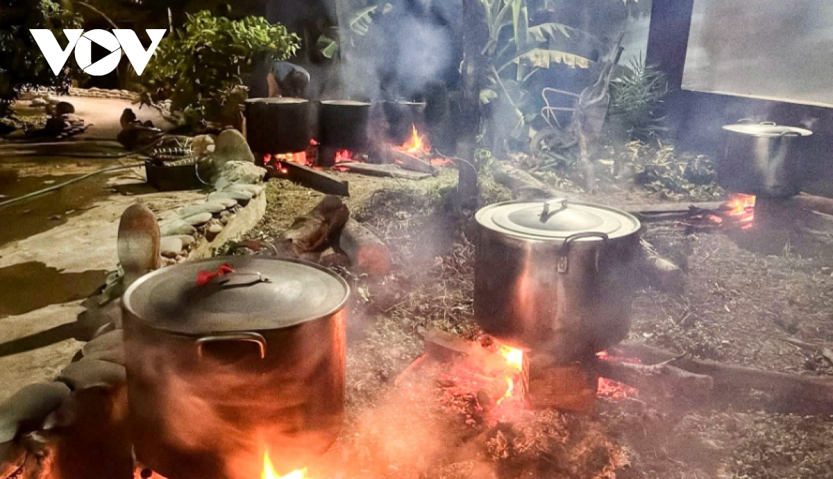 Hơn 50 người dân đã thức trắng đêm bên bếp lửa.Trong ánh lửa hồng chiếu sáng những khuôn mặt rạng rỡ, những bàn tay thoăn thoắt gói từng chiếc bánh vuông vắn. Đến sáng, hàng trăm cặp bánh chưng xanh cùng hàng tấn hàng hóa được chất lên xe, chuẩn bị cho chuyến đi ra Thái Nguyên, nơi nhiều xã vẫn đang khẩn trương khắc phục hậu quả lũ.