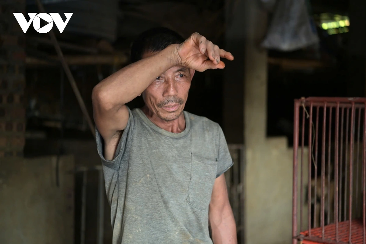 Bản thân ông Học và 2 người con trai phải trèo lên mái nhà ở tạm, không dám đi chạy lũ vì còn phải trông nhà cửa, tài sản.
