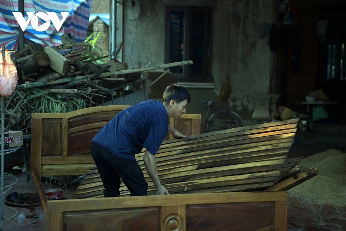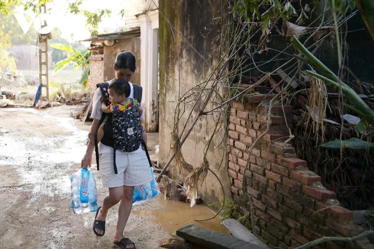 Sau khi nước rút, cả nhà cùng với bà con làng xóm lại bắt tay vào dọn dẹp, lau rửa nhà của và đồ đạc để về ở.