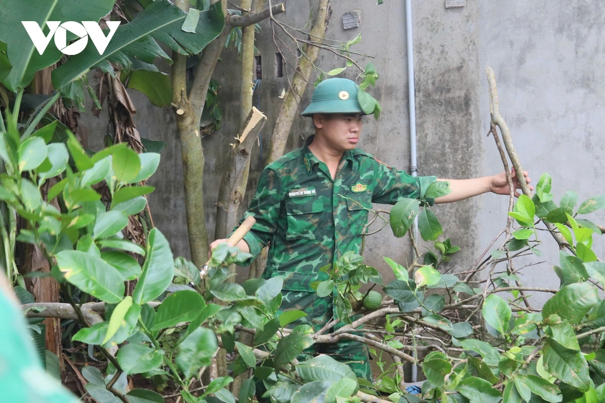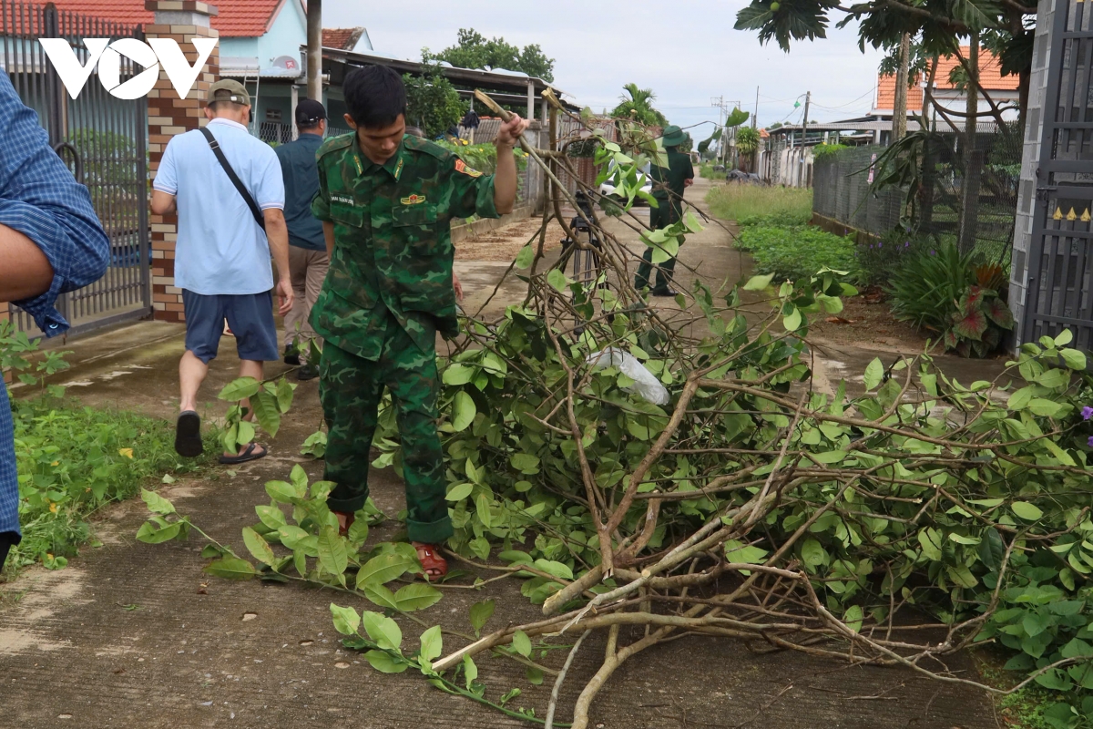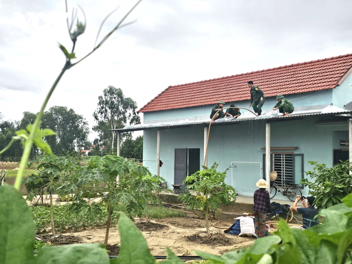 Trong quá trình hỗ trợ người dân chằng chống nhà cửa, lực lượng vũ trang tỉnh Quảng Ngãi ưu tiên tiếp cận các hộ gia đình yếu thế, neo đơn, người già, phụ nữ không có lao động chính. Các cán bộ, chiến sĩ giúp dân chằng chống mái tôn, buộc cố định vật dụng, gia cố cửa chính, cửa sổ, hướng dẫn người dân di chuyển tài sản, gia súc đến nơi an toàn. Trong sáng nay tại tỉnh Quảng Ngãi, thời tiết tương đối mát mẻ, gió nhẹ và chưa có mưa lớn. Tuy nhiên, theo dự báo, thời tiết sẽ chuyển biến nhanh trong vài giờ tới nên công tác hỗ trợ được lực lượng triển khai khẩn trương để giảm thiểu rủi ro khi bão đổ bộ.