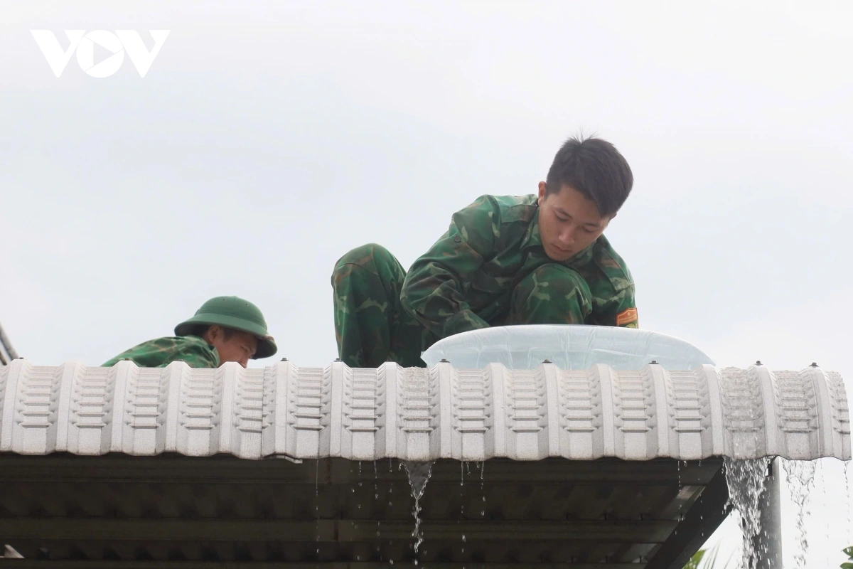 Về phương châm “bốn tại chỗ”, Trung tá Nguyễn Tiến Hải cho biết, đơn vị đã chuẩn bị đầy đủ lực lượng, hậu cần, nhân lực và vật chất, sẵn sàng ứng phó trong mọi tình huống, bảo đảm an toàn tuyệt đối cho nhân dân. Công tác chằng chống nhà cửa được triển khai đồng loạt và dự kiến hoàn thành trước khi bão đổ bộ khoảng nửa ngày để bảo đảm an toàn, giúp người dân yên tâm sinh hoạt: