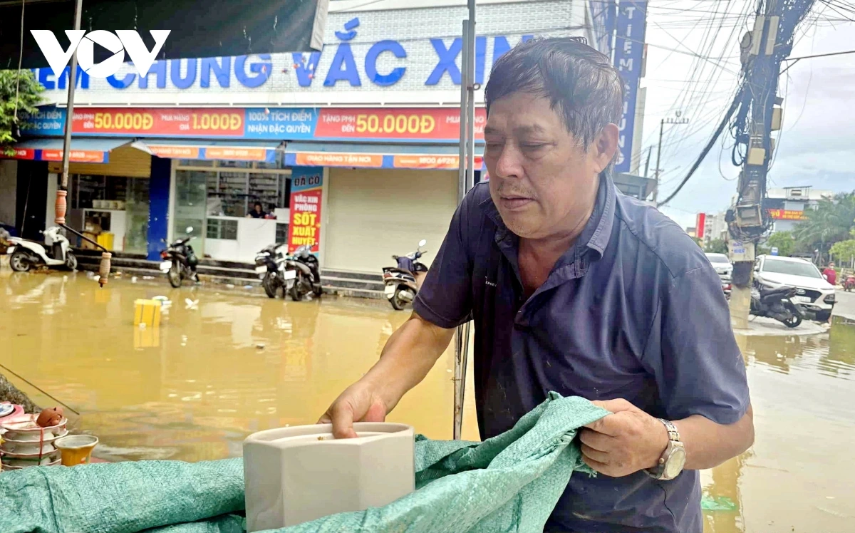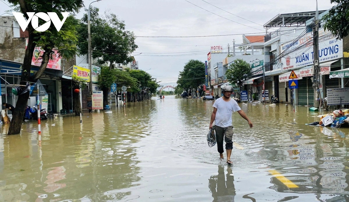 Tại phường Điện Bàn, nước sông tiếp tục dâng cao khiến khu chợ Vĩnh Điện ngập sâu, nhiều gian hàng chìm trong biển nước. Người dân quanh khu chợ tất bật kê cao hàng hóa, dọn dẹp đồ đạc, sẵn sàng sơ tán nếu lũ tiếp tục lên. Nước lũ bủa vây khiến hoạt động mua bán phải chuyển ra đầu đường Nguyễn Phan Vinh. Giữa dòng nước đục ngầu, tiếng rao bán hàng xen lẫn tiếng gọi nhau vội vã dọn dẹp "chạy lũ".