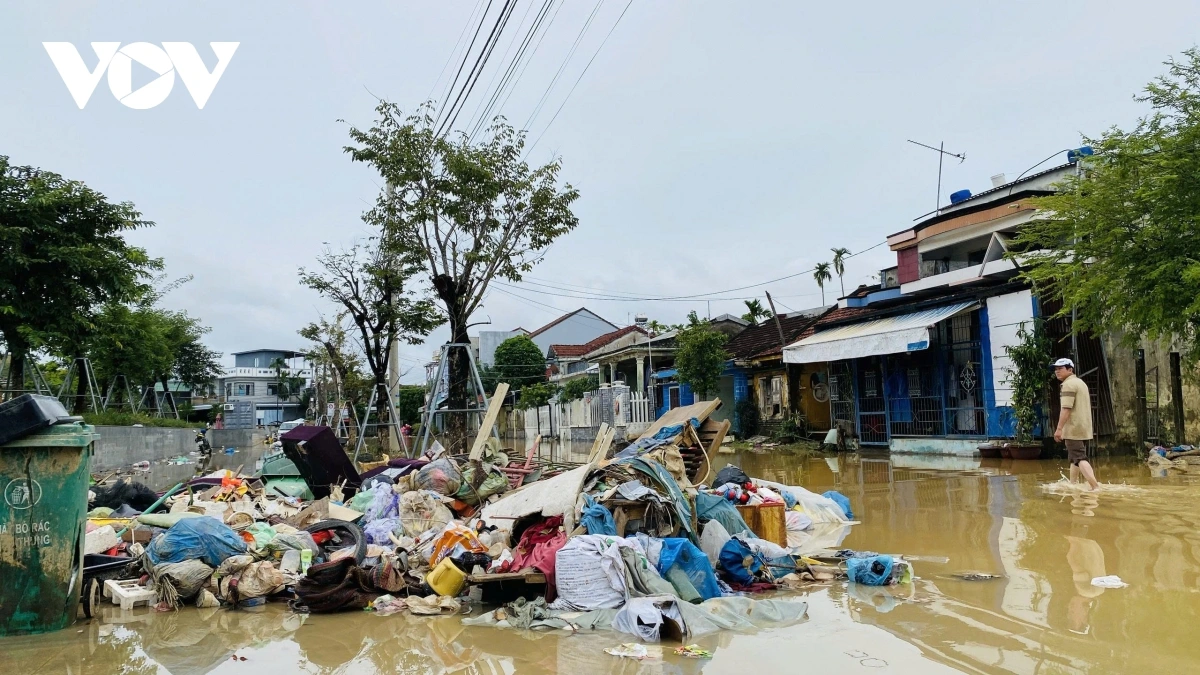 Ông Nguyễn Thanh Dũng, sống tại khu chợ Vĩnh Điện cho biết, rác thải và bùn non chưa kịp dọn hết sau đợt ngập trước nay lại tiếp tục tràn về, thật là khủng khiếp: “Đợt lũ lịch sử này khủng khiếp lắm, nước ngâm ba bốn ngày liền. Tivi, tủ lạnh hư hết, đàn gà cũng bị cuốn trôi. Nước vừa rút giờ lại dâng lên, chỉ biết dọn dẹp lại thôi, vì sống ở vùng lũ mà biết phải làm sao. Hiện giờ thiếu nhất là nước sinh hoạt, chúng tôi phải tranh thủ hứng nước mưa vì nước máy chưa có. Thực phẩm thiết yếu cũng đã mua dự trữ sẵn trong nhà, đủ dùng khoảng một tuần”.