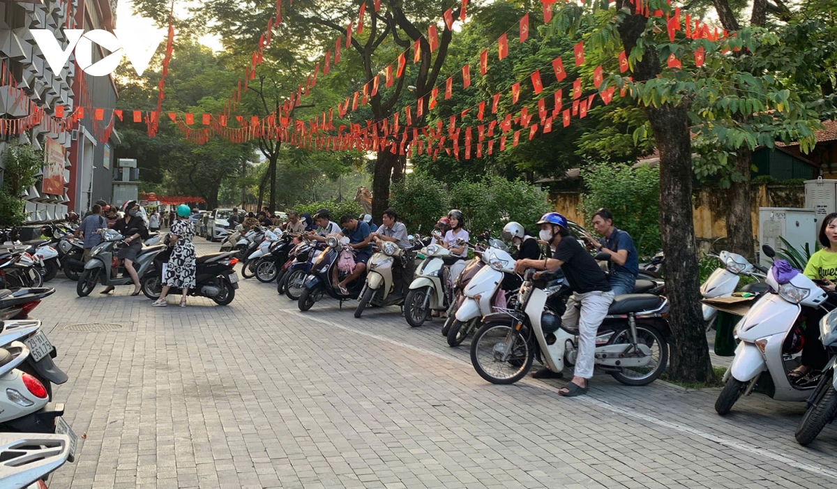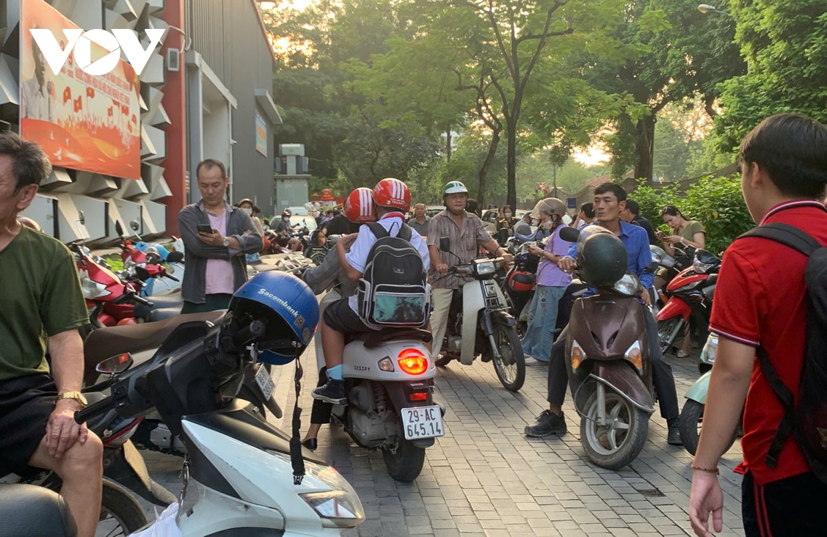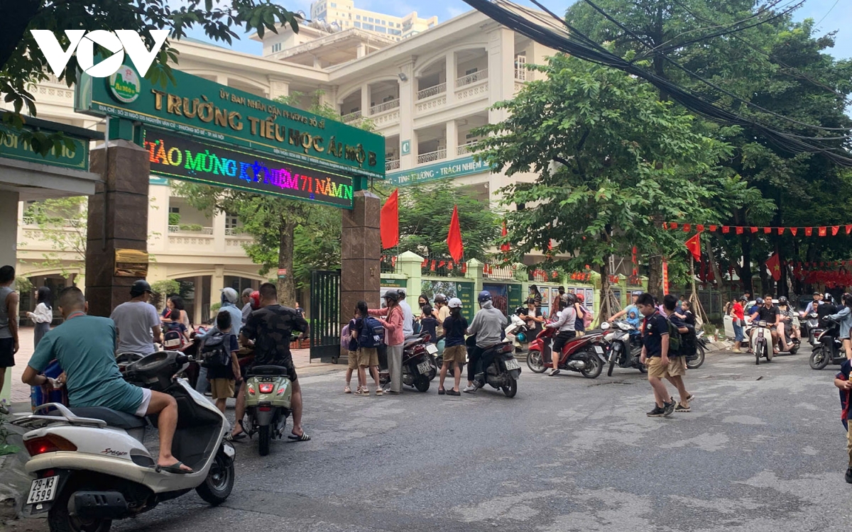 Tại trường THCS Chu Văn An (đường Thụy Khuê, Hà Nội), do đường hẹp, phụ huynh dừng xe trên vỉa hè chờ đón con. Chị Nguyễn Thu Hằng - phụ huynh học sinh trường THCS Chu Văn An cho biết: “Xe máy đỗ trên vỉa hè sát nhau thành từng hàng, tôi đã chứng kiến có con bị bỏng bô khi cố gắng len qua các hàng xe".