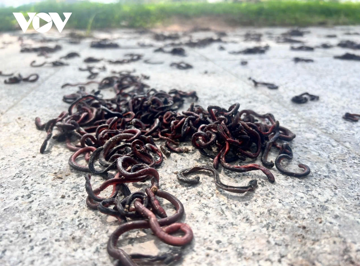 VOV.VN - Lý giải về vấn đề này, Tiến sĩ Lê Thị Mỹ Diệp, Phó Chủ tịch Thường trực Hội Bảo vệ Thiên nhiên và Môi trường tỉnh Quảng Ngãi cho biết, hiện tượng giun đất tập trung bò lên bề mặt có thể xuất phát từ nhiều nguyên nhân như mưa lớn khiến đất bí khí, ngập úng kéo dài, rung chấn địa chất....