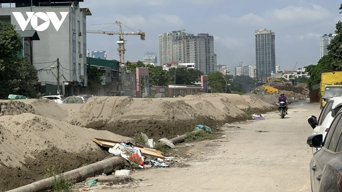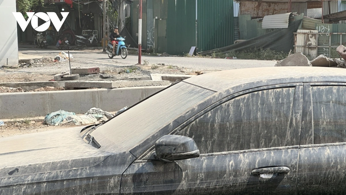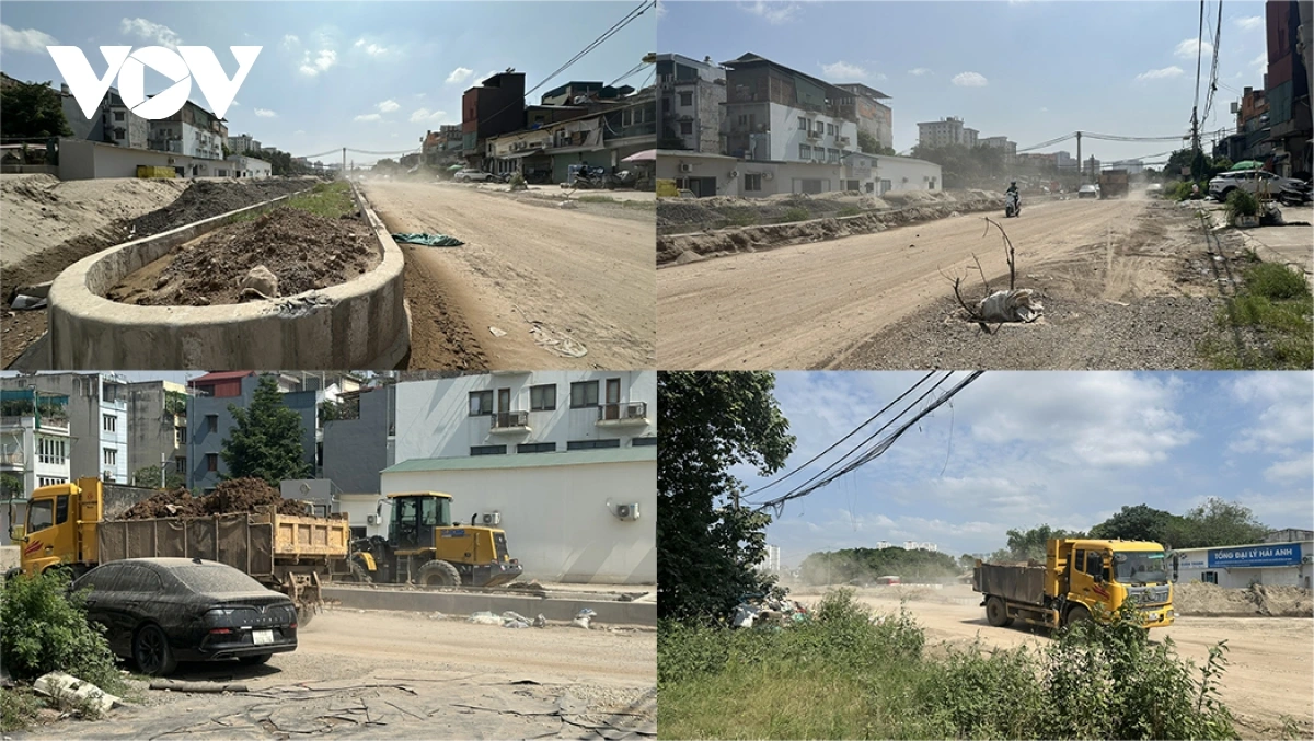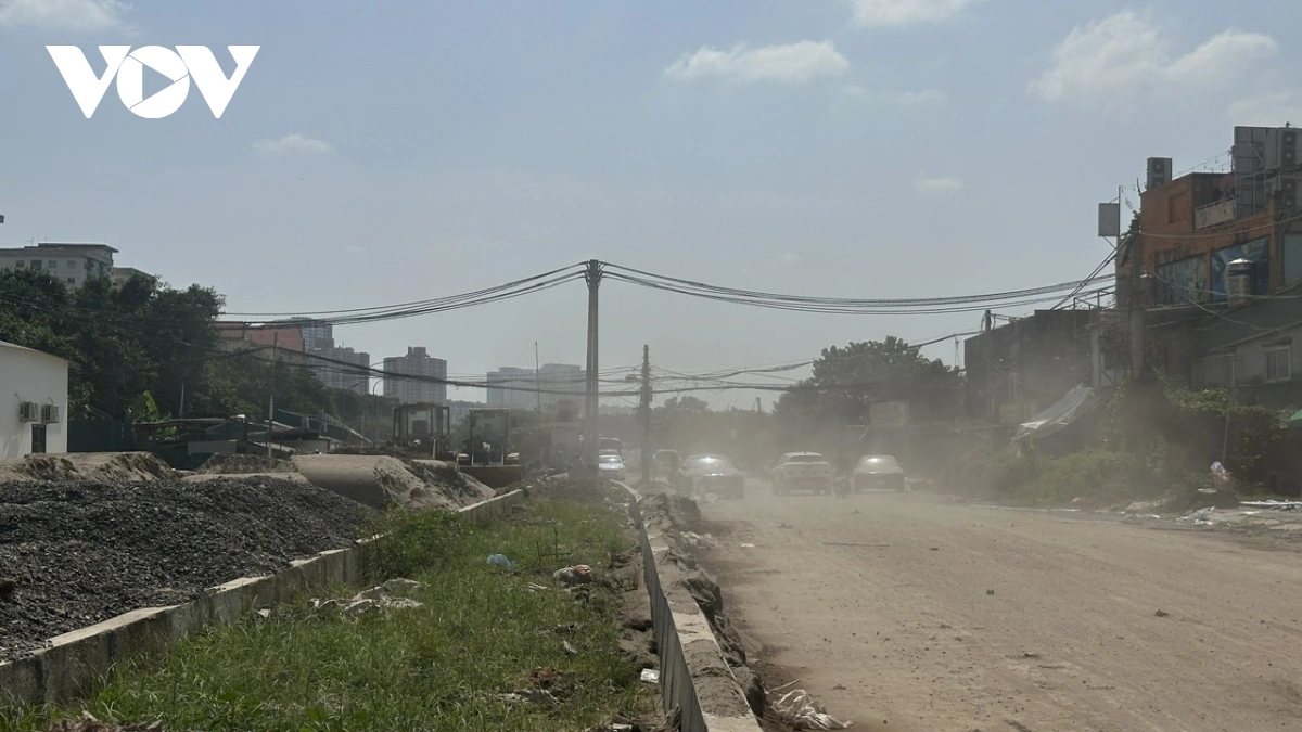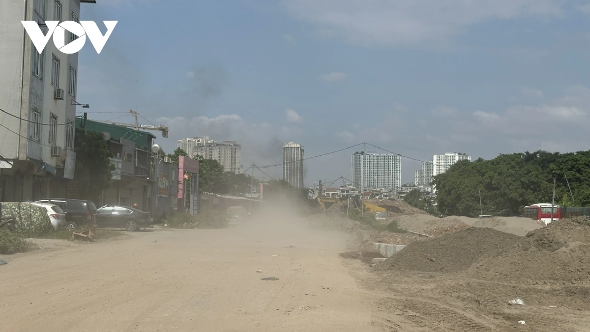 VOV.VN - Sau nhiều năm bị đình chỉ Dự án đường 2,5 đoạn từ cầu L3 qua sông Lừ đến Đầm Hồng (Hà Nội) thi công trở lại. Xe chở đất, cát không che chắn chạy suốt ngày, công trường không được phun nước khiến hàng trăm hộ dân quanh khu ven đường chìm trong "biển bụi" mịt mù