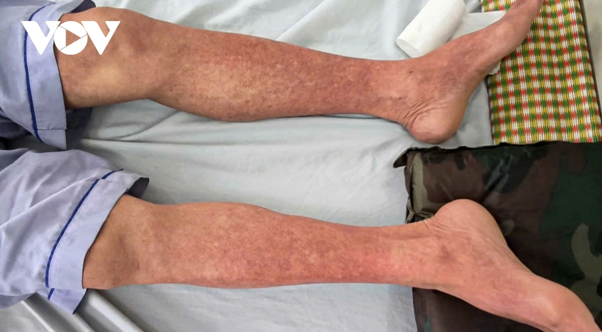 Vùng da nổi mẩn đỏ của bệnh nhân sốt xuất huyết