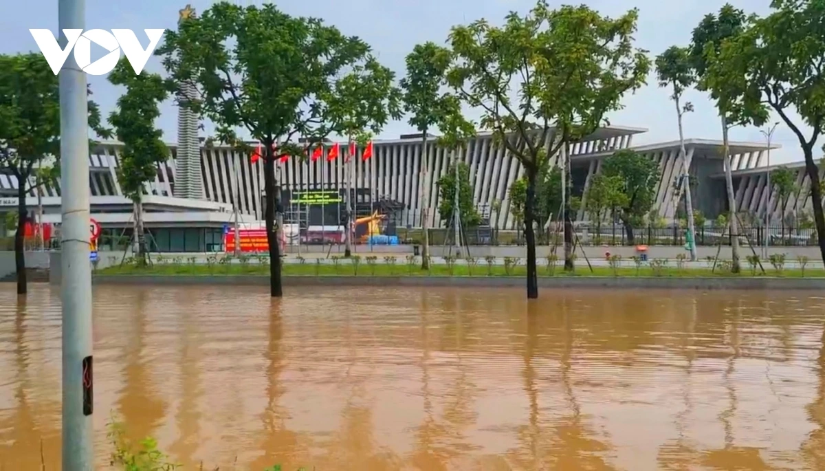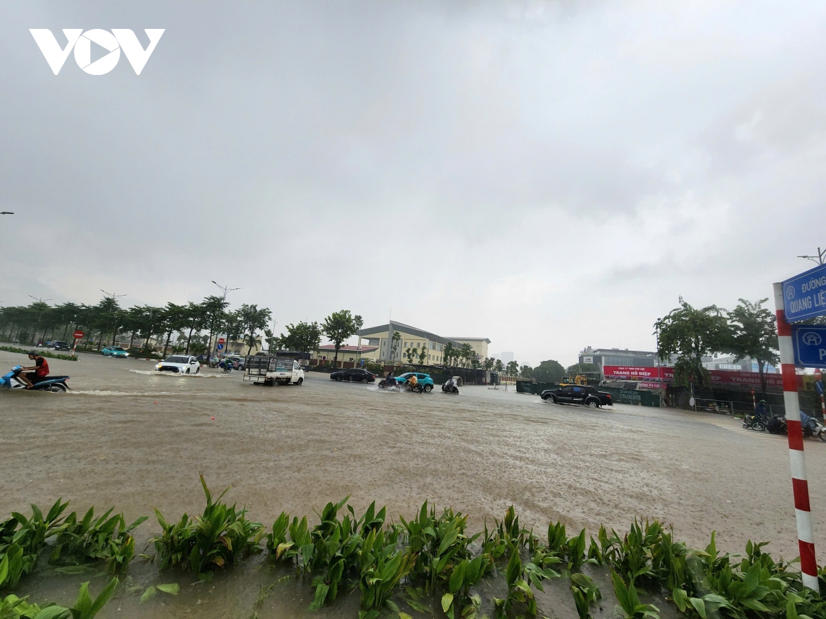 VOV.VN - Sáng 1/10, tại Hà Nội, mưa đã ngớt nhưng nhiều tuyến đường vẫn ngập sâu, khiến người dân gặp khó khăn khi di chuyển.