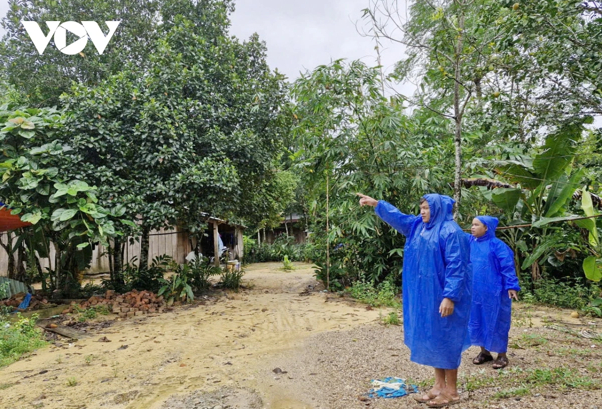 Khi nghe tin bão số 12 có thể gây mưa to, gia đình ông Nguyễn Quốc Thái, ở thôn Pho, xã miền núi Sông Kôn, thành phố Đà Nẵng (huyện Đông Giang, tỉnh Quảng Nam cũ) phải di dời đến khu vực an toàn để trú tạm, phòng nguy cơ đất đá trên đồi ở phía sau nhà bị sạt lở. Ông Nguyễn Quốc Thái cho biết, nhà nằm dưới chân đồi, tình trạng sạt lở kéo dài nhiều năm nay, đến mùa mưa, nước từ trên khe đồi đổ xuống, chảy tràn vào nhà. Hiện, gia đình ông Thái đã xây kè rọ đá tạm, phòng ngăn đất đá tràn xuống khi có mưa lớn. "Gia đình báo với chính quyền xã đến xem nhiều rồi, cứ nói là để họ giải quyết. Người dân mong muốn kè và chắn lại không cho nước, đất đá tràn xuống vào nhà mình. Mỗi lần mưa to là phải di dời tìm nơi trú, lo nước, đất tràn xuống. Đồi này có đá to, nếu mưa nhỏ không sao nhưng mưa lớn thì đất tràn vào trong nhà. Người dân quanh đây ai cũng lo”.