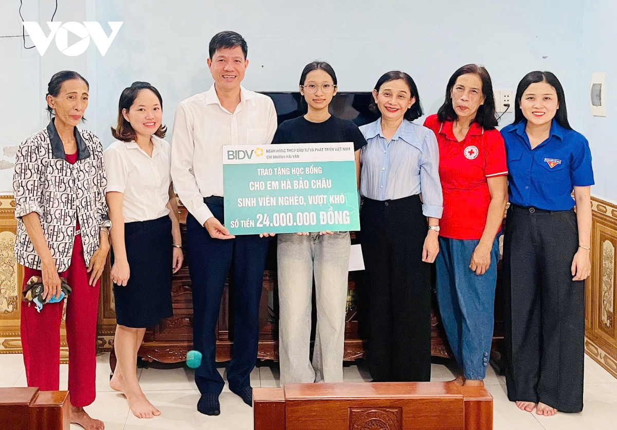 Ngoài những món quà về tinh thần, vật chất, học bổng còn có sự quan tâm sẻ chia của cộng đồng. Thời gian qua, Bảo Châu nhận được nhiều sự quan tâm, hỗ trợ của các tổ chức từ thiện, nhà hảo tâm. Vừa rồi tịch Ủy ban mặt Trận tổ quốc Việt Nam phường Liên Chiểu vận động, phối hợp với ngân hàng Thương mại cổ phần Đầu tư và Phát triển Việt Nam (BIDV) hỗ trợ suất học bổng 24 triệu đồng. Tiếp tục hỗ trợ đồng hành với em Bảo Châu”.