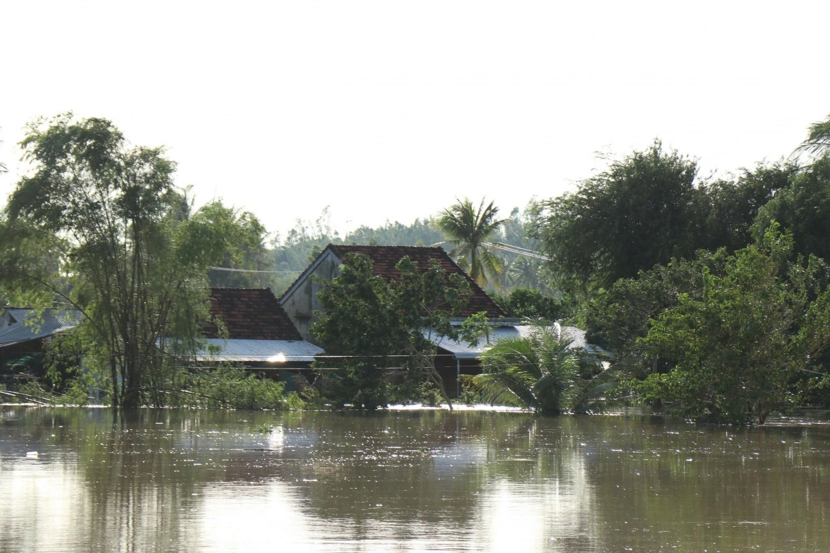 Cơn bão số 13 mang theo mưa lớn, lũ dâng, khiến nhiều nhà ở Tuy An Bắc ngập sâu. Người dân chỉ kịp di chuyển những vật dụng thiết yếu.