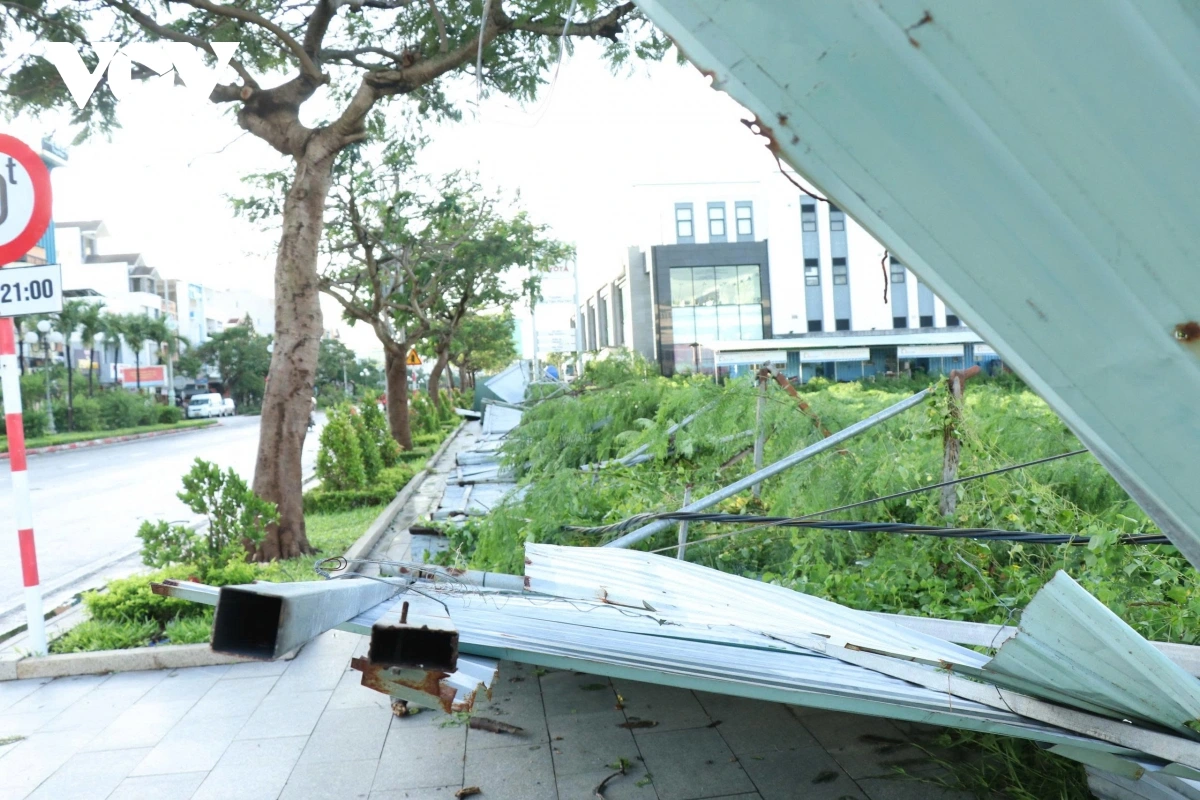 Rào chắn các công trình đang xây dựng tại phường Tuy Hoà cũng không chịu được trước áp lực gió mạnh đã sập và đổ rạp trên vỉa hè.