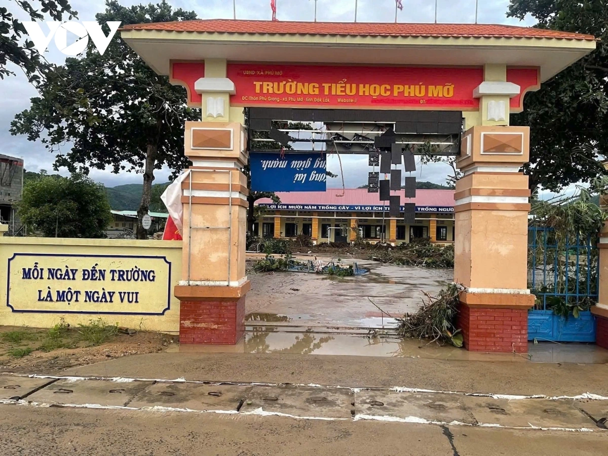 Nhiều trường học tại xã Phú Mỡ (tỉnh Phú Yên cũ) tan hoang sau khi bão đi qua.