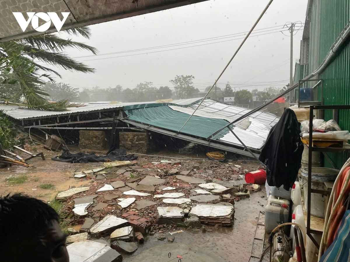 Không chỉ vùng ven biển, sâu trong vùng núi của tỉnh Đắk Lắk như tại xã M' Drăk cũng ghi nhận nhiều thiệt hại về nhà cửa tốc mái, sập đổ tường, cây cối gãy và ngập lụt.