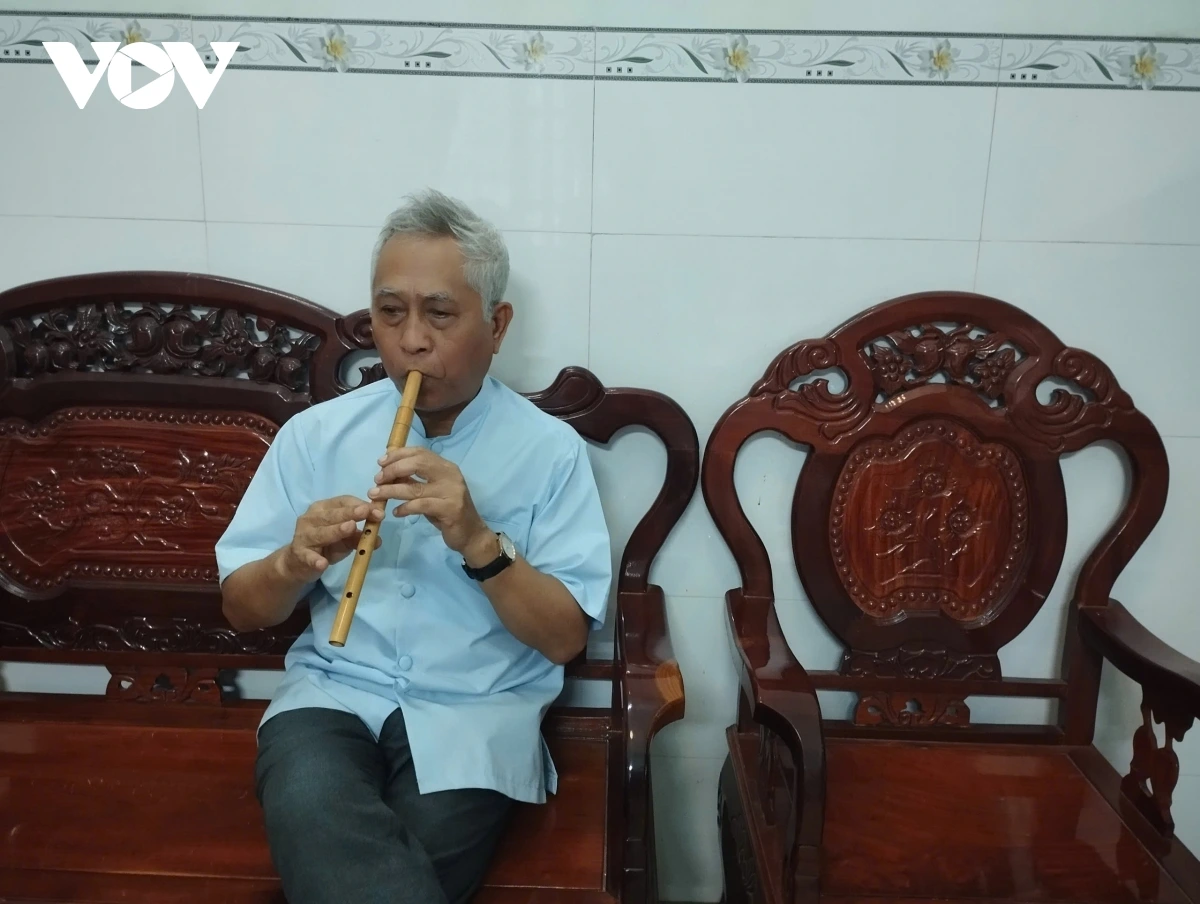 Ông Thạch Thia Sê Rây biểu diễn thổi sáo trúc