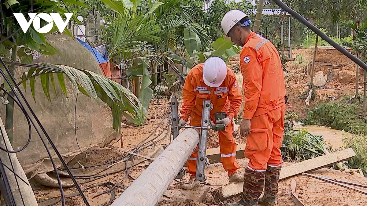 Đến nay, hơn 99% khách hàng đã được cấp điện trở lại, vừa đảm bảo sản xuất, sinh hoạt, vừa tập trung khắc phục hậu quả thiên tai.