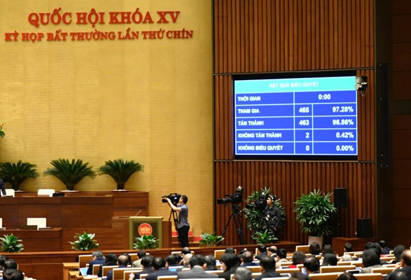 VOVVN - VOV.VN - Sáng 18/2, với 463/465 đại biểu Quốc hội bấm nút tán thành (chiếm 96,86% tổng số đại biểu Quốc hội), Quốc hội đã thông qua Luật Tổ chức Chính phủ (sửa đổi). Luật gồm...