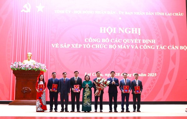 VOVVN - VOV.VN - Chiều 28/2, Tỉnh ủy Lai Châu tổ chức Hội nghị công bố các quyết định của tỉnh về sắp xếp tổ chức bộ máy và công tác cán bộ sau sắp xếp, sáp...
