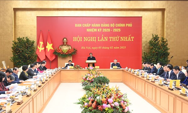 VOVVN - VOV.VN - Ngày 5/2, Hội nghị lần thứ nhất Ban Chấp hành Đảng bộ Chính phủ, nhiệm kỳ 2020 - 2025 được diễn ra dưới sự chủ trì của Thủ tướng Phạm Minh Chính.