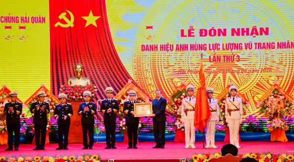 VOVVN - VOV.VN - Sáng 28/2 tại TP Hải Phòng, Quân chủng Hải quân tổ chức Lễ đón nhận danh hiệu Anh hùng Lực lượng vũ trang nhân dân (Anh hùng LLVTND) lần thứ 3. Tổng Bí...