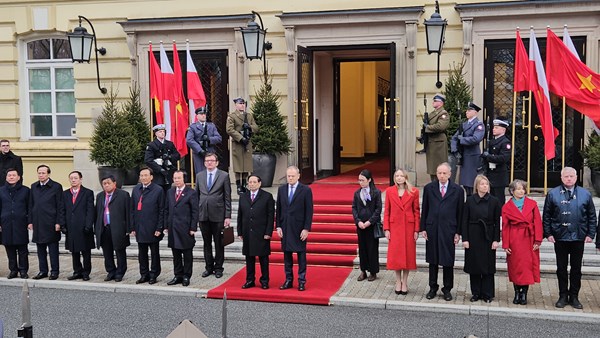 VOVVN - VOV.VN - Sáng 16/1 giờ địa phương, Thủ tướng nước Cộng hòa Ba Lan Donald Tusk chủ trì lễ đón chính thức Thủ tướng Chính phủ Phạm Minh Chính tại Phủ Thủ tướng Ba Lan.