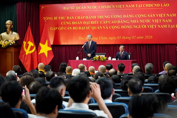VOVVN - VOV.VN - Tiếp tục các hoạt động trong khuôn khổ chương trình thăm cấp Nhà nước tới Lào, chiều 5/2 tại Thủ đô Vientiane, Tổng Bí thư Tô Lâm cùng Đoàn đại biểu cấp cao Việt...