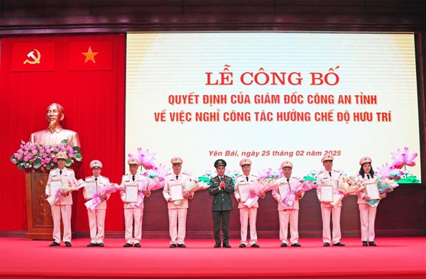 VOVVN - VOV.VN - Chiều 25/2, Công an tỉnh Yên Bái tổ chức lễ công bố quyết định của Giám đốc Công an tỉnh về việc nghỉ công tác hưởng chế độ hưu trí đối với 16...