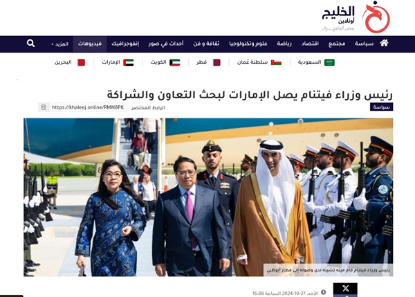 VOVVN - VOV.VN - Truyền thông khu vực đưa tin đậm nét về chuyến thăm chính thức của Thủ tướng Chính phủ Phạm Minh Chính tới Các Tiểu vương quốc Arab Thống nhất (UAE), đặc biệt là...