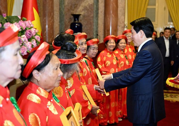 VOVVN - VOV.VN - Chủ tịch nước xúc động trước nhiều tấm gương phụ nữ tiêu biểu, mặc dù tuổi cao vẫn rất tích cực với các hoạt động của Hội Phụ nữ và các phong trào...