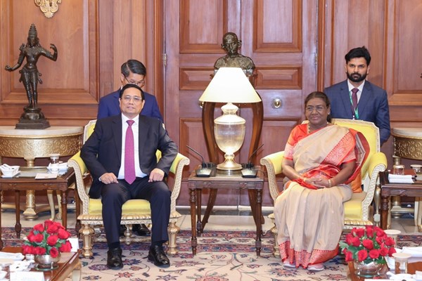 VOVVN - VOV.VN - Sáng 1/8, tại Phủ Tổng thống, Thủ đô New Dehli, Thủ tướng Chính phủ Phạm Minh Chính đã hội kiến Tổng thống Droupadi Murmu nhân chuyến thăm cấp Nhà nước đến Ấn Độ.