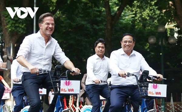 VOVVN - VOV.VN - Trưa 2/11, Thủ tướng Phạm Minh Chính cùng Thủ tướng Hà Lan Mark Rutte đã đạp xe đi qua các tuyến phố Phan Đình Phùng, Nguyễn Tri Phương, Điện Biên Phủ, Tôn Thất...