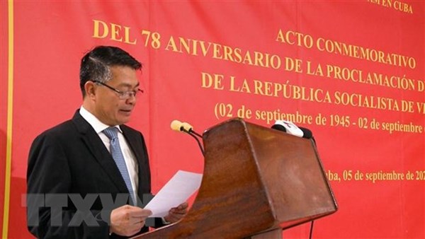 VOVVN - Đại sứ quán Việt Nam tại Cuba đã long trọng tổ chức Lễ kỷ niệm 78 năm Quốc khánh 2/9 tại Quảng trường Cách mạng Antonio Maceo ở Santiago de Cuba.
