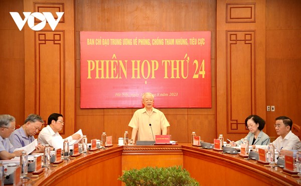 VOVVN - VOV.VN - Sáng 16/8, tại Hà Nội, Tổng Bí thư Nguyễn Phú Trọng đã chủ trì phiên họp 24 của Ban Chỉ đạo Trung ương về Phòng chống tham nhũng tiêu cực.