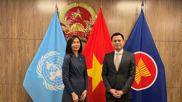 VOVVN - VOV.VN - Ngày 16/11, Đại sứ, Trưởng Phái đoàn Việt Nam tại Liên hợp quốc Đặng Hoàng Giang đã tiếp bà Pauline Tamesis, Điều phối viên thường trú Liên hợp quốc tại Việt Nam.