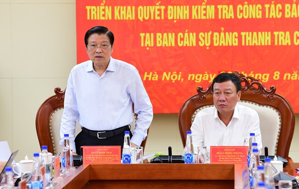VOVVN - VOV.VN - Ngày 29/8, đoàn kiểm tra do Trưởng Ban Nội chính Trung ương Phan Đình Trạc làm trưởng đoàn đã làm việc tại trụ sở Thanh tra Chính phủ.