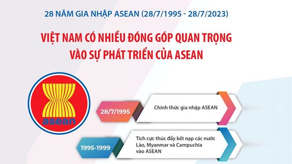 VOVVN - Sau 28 năm gia nhập ASEAN (28/7/1995-28/7/2023), Việt Nam luôn là một trong những thành viên chủ động, tích cực, có trách nhiệm, góp phần xây dựng ASEAN trở thành cộng đồng chung hoàn thiện.