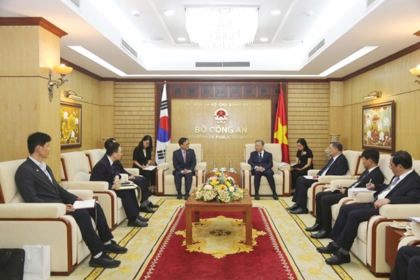 VOVVN - VOV.VN - Chiều nay (31/8), tại Hà Nội, Đại tướng Tô Lâm, Ủy viên Bộ Chính trị, Bộ trưởng Bộ Công an tiếp Đại sứ Đặc mệnh toàn quyền Hàn Quốc tại Việt Nam Choi...