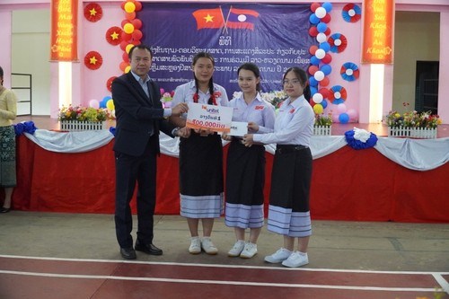 VOV5 - (VOV5) -Ban tổ chức trao 2 giải nhất cho Trường song ngữ Lào - Việt Nam Nguyễn Du và Trường Phổ thông Trung học Vientiane và trao 5 giải cho các tiết mục văn nghệ...