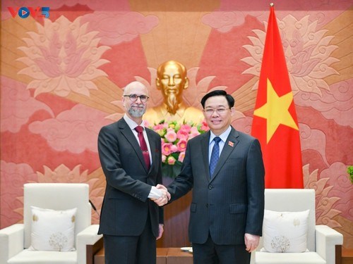 VOV5 - (VOV5) -Chiều 25/08, tại Nhà Quốc hội, Chủ tịch Quốc hội Vương Đình Huệ tiếp Đại sứ Canada tại Việt Nam Shawn Perry Steil.