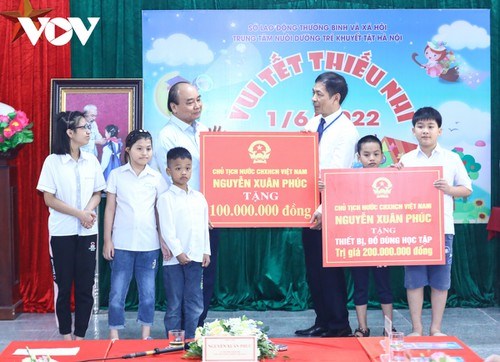 VOV5 - (VOV5) -Sáng 31/5, Chủ tịch nước Nguyễn Xuân Phúc thăm, tặng quà trẻ khuyết tật sống ở Trung tâm Nuôi dưỡng trẻ khuyết tật Hà Nội tại huyện Chương Mỹ.