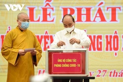 VOV5 - (VOV5) -Sáng nay, 27/5, Ủy ban Trung ương MTTQ Việt Nam tổ chức Lễ phát động đợt cao điểm quyên góp ủng hộ phòng, chống dịch COVID-19.
