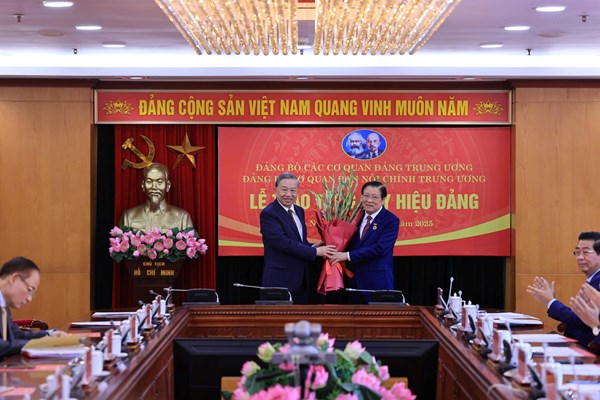 VOVVN - VOV.VN - Ngày 28/8 tại Hà Nội, Tổng Bí thư Tô Lâm tới dự và trao huy hiệu 45 năm tuổi Đảng tặng ông Phan Đình Trạc, Trưởng Ban Nội chính Trung ương.