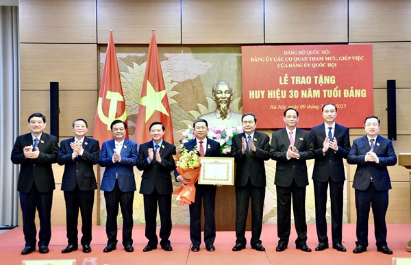 VOVVN - VOV.VN - Ngày 9/7, tại Nhà Quốc hội, Bí thư Đảng ủy, Chủ tịch Quốc hội Trần Thanh Mẫn dự Lễ trao tặng Huy hiệu 30 năm tuổi Đảng cho ông Vũ Hải Hà, Phó Bí...