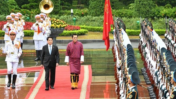 VOVVN - VOV.VN - Nhận lời mời của Ngài Lương Cường, Chủ tịch nước Cộng hòa xã hội chủ nghĩa Việt Nam và Phu nhân, Quốc vương Bhutan Jigme Khesar Namgyel Wangchuck và Hoàng hậu lần đầu...